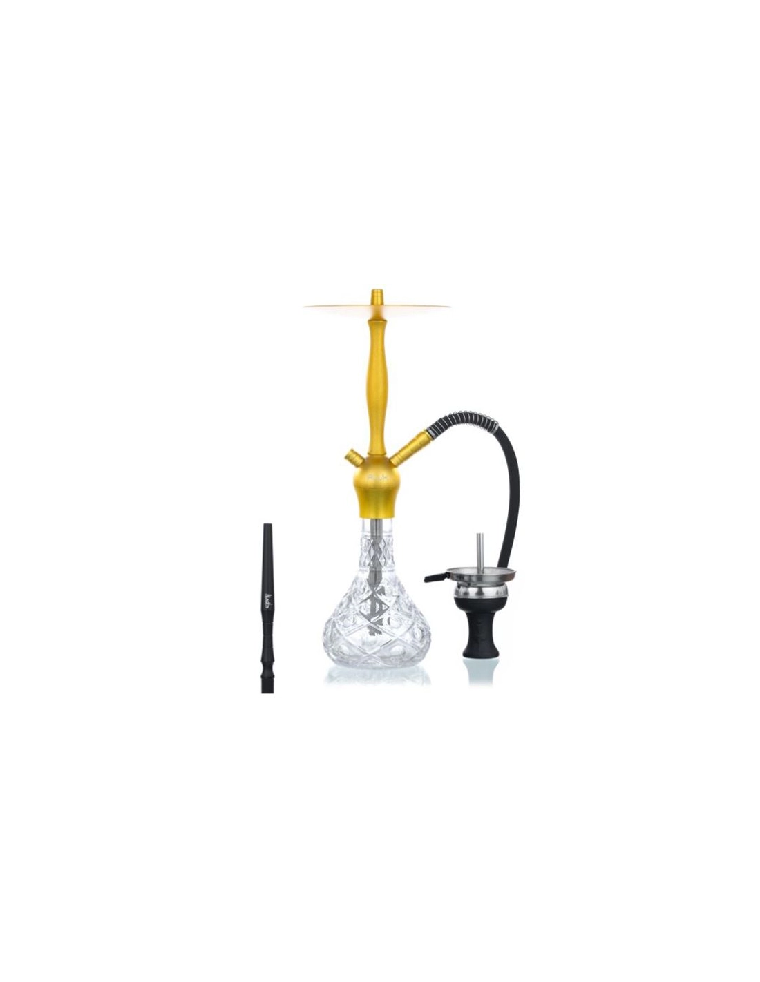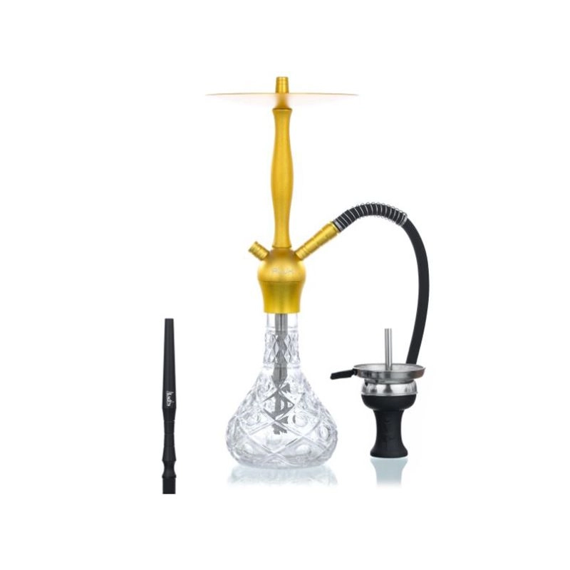 Die Aladin Alux Admiral Shisha ist aus Aluminium hergestellt und eine reine 1-Schlauch Shisha. Die Base der Alux Admiral Wasserpfeife hat ein Closed-Chamber-System und wird per Klickverschluss auf die Bowl montiert. Die Shisha hat einen Schlauchanschluss mit Schliff, ein passender Adapter für den Silikonschlauch ist im Lieferumfang mit dabei.