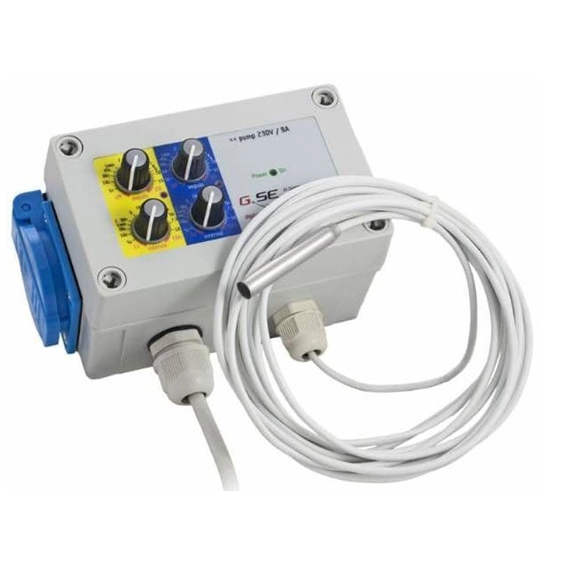 Die Impulsdauer und die Intervallzeit ist separat einstellbar für Tag und Nacht Bewässerung. Das Gerät kommt komplett in einem wasserdichten Gehäuse mit aufklappbarem Deckel, kompatible Steckdosen und einen eingebauten Lichtsensor mit 4m Niederspannungsleitung welche die Tag/Nacht-Zeit entdeckt.