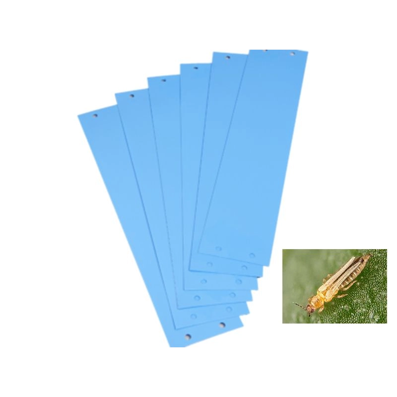 Mit den giftfreien, effizienten Klebefallen mit blauer Lockfarbe kann ein Thripsbefall im Gewächshaus, Wintergarten, bei Zimmerpflanzen und im Aussenbereich überwacht bzw. reduziert werden.