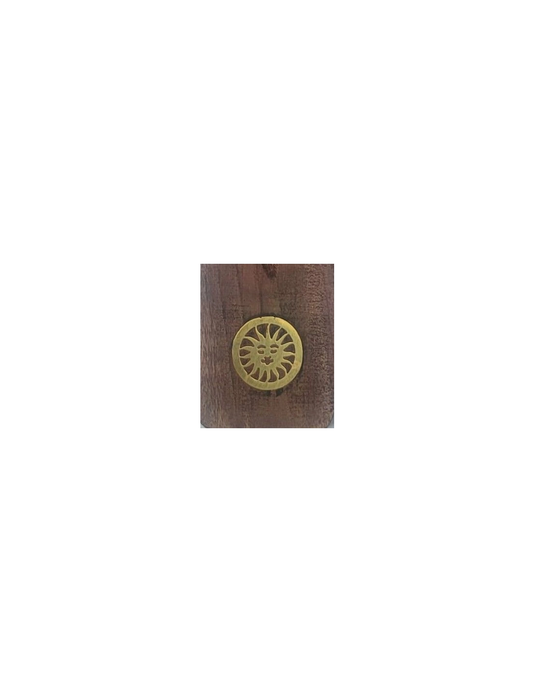 Räucherstäbchenhalter aus Holz mit goldener Sonne