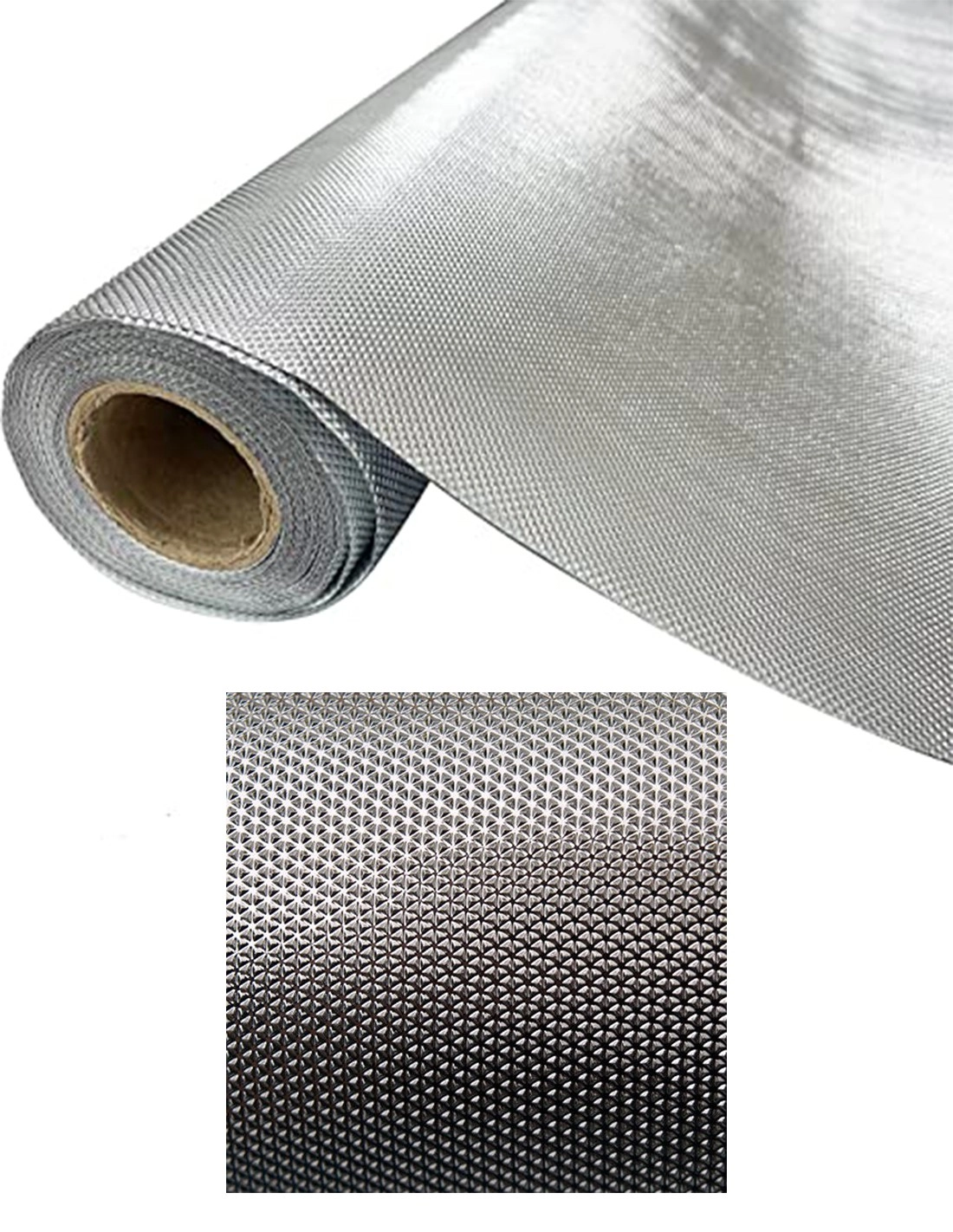 Silberfarbenes metallisiertes Papier mit einer Beschichtung in Form eines Diamanten.