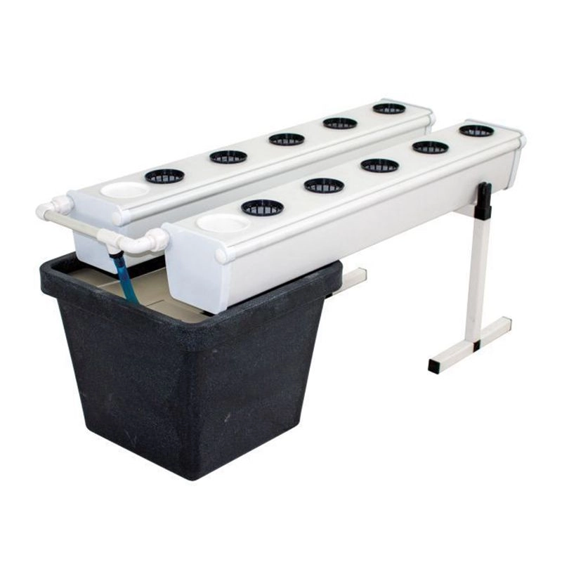 GrowStream®-Systeme bestehen aus einem Vorratsbehälter mit einer einfachen Wasserpumpe, die das Wasser zur Pflanzrinne pumpt, wo es in präzise gesteuerten Zeitintervallen eingespritzt wird. Anschließend fließt die Nährlösung durch das Ablaufrohr zurück und versorgt den Vorratsbehälter ohne aufwändige Steuertechnik oder eine Vielzahl von Luftpumpen optimal mit Sauerstoff. Das vereinfacht die Montage und den Betrieb des GrowStream®-Systems weitestgehend, so dass der Anbauer sich seiner eigentlichen Aufgabe – der Anlagensteuerung – widmen kann, ohne Zeit mit der Wartung des Systems zu verlieren.