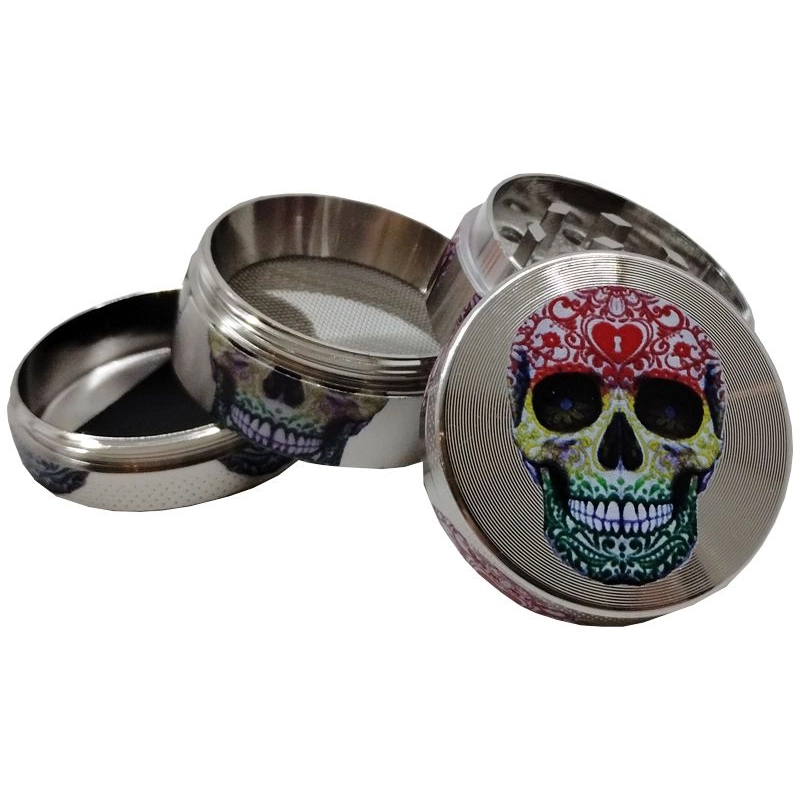 Champ High Grinder ist ein 4-teiliger Grinder mit einem Durchmesser von 40mm, mit dem du die Pollen deiner CBD ernten kannst. Dieser wunderschöne Grinder ist mit mexikanischen Totenschädeln in Rastafarben verziert.