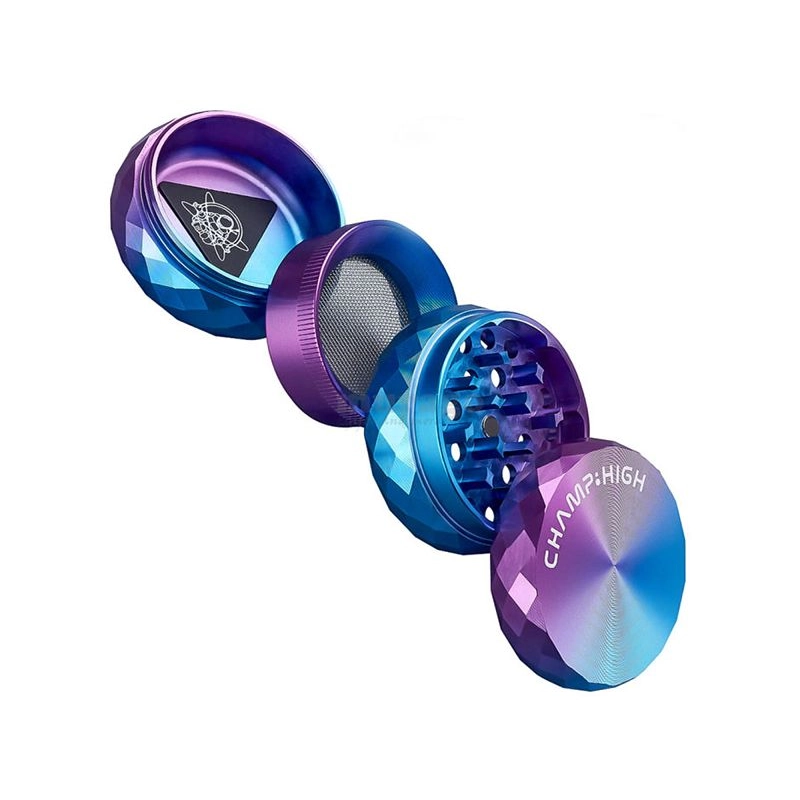 Ein 4-teiliger Grinder mit einem Durchmesser von 53mm der Marke Champ High mit einer originellen Form und aus zwei Farben bestehend.
