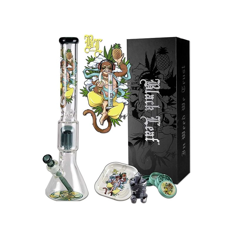 Der Legende nach flog Hanuman mal zum Himalaya und riss einen ganzen Berg voller heilender Kräuter aus, um damit die Verletzten auf einem Schlachtfeld zu verarzten daher ist Hanuman unser Mann Und ziert der Heilkräuterstory wegen diese schöne Glasbong, allerdings in der coolen und witzigen BLACK LEAF Version Diese ist selbstverständlich der kreativen Feder unseres Künstlers Sly entsprungen.