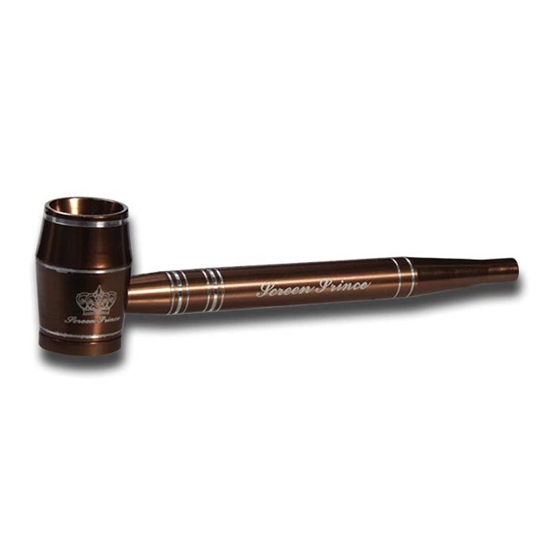 Die 'Screen Prince' Sieblose Pfeife - die Pfeife kommt ganz ohne Sieb aus und verstopft nicht. Sie ist schnell und einfach zu reinigen, da alle Teile an ihr verschraubt sind. Der Kopf ist innen konvex geformt und hat am Boden ein Rädchen. Damit kann man den Abstand des Durchlasszylinders zum Rand einstellen und die Zugstärke bestimmen.