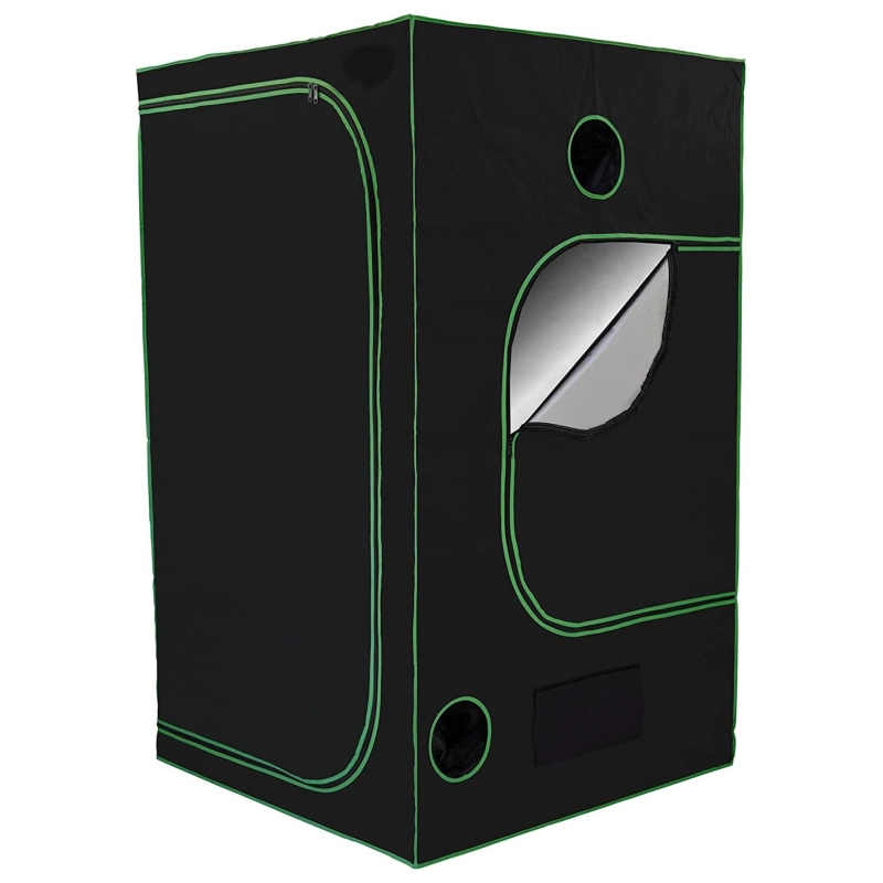 Die Black Room Classic 120 ist eine qualitativ hochwertige Zuchtbox in den Massen 120 x 120 x 200 cm und eignet sich für alle, die in den eigenen vier Wänden auf kleinem Raum etwas anbauen möchten. Die Black Room Classic 120 wird aus ultrareflektierendem Mylar mit Lichee-Textur und einem hochwertigen 600D-Oxford-Gewebe hergestellt, das das Licht gut reflektiert und so bessere Erträge ermöglicht.