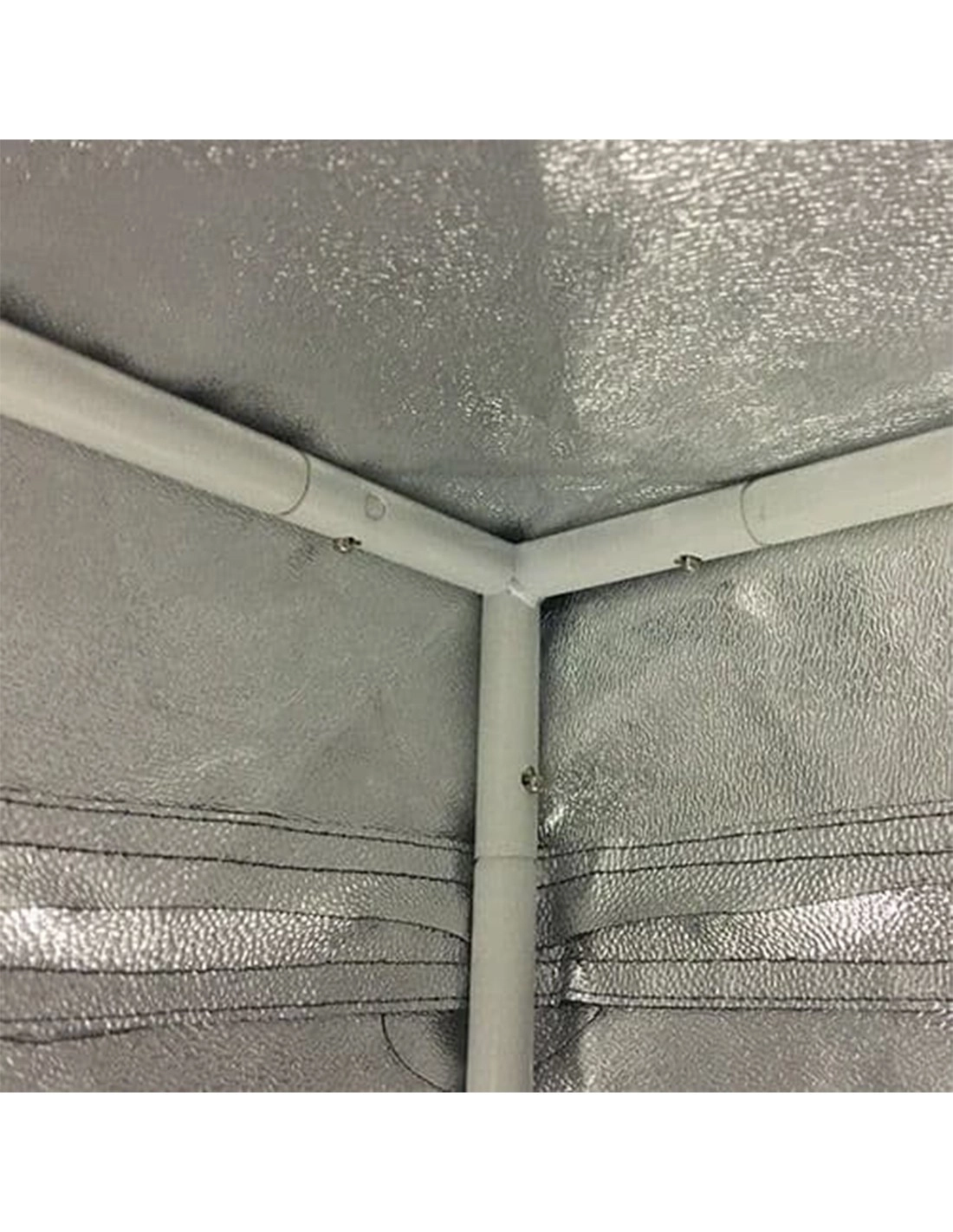 An der Decke besitzt die Box zudem zwei Stangen mit einem Durchmesser von je 16 mm. Sie bieten den nötigen Platz, um eine Lampe oder einen Kohlefilter zur Geruchsneutralisierung aufzuhängen. Die Ecken der Box sind aus ultrastarkem Stahl mit Push-Lock-System gefertigt.