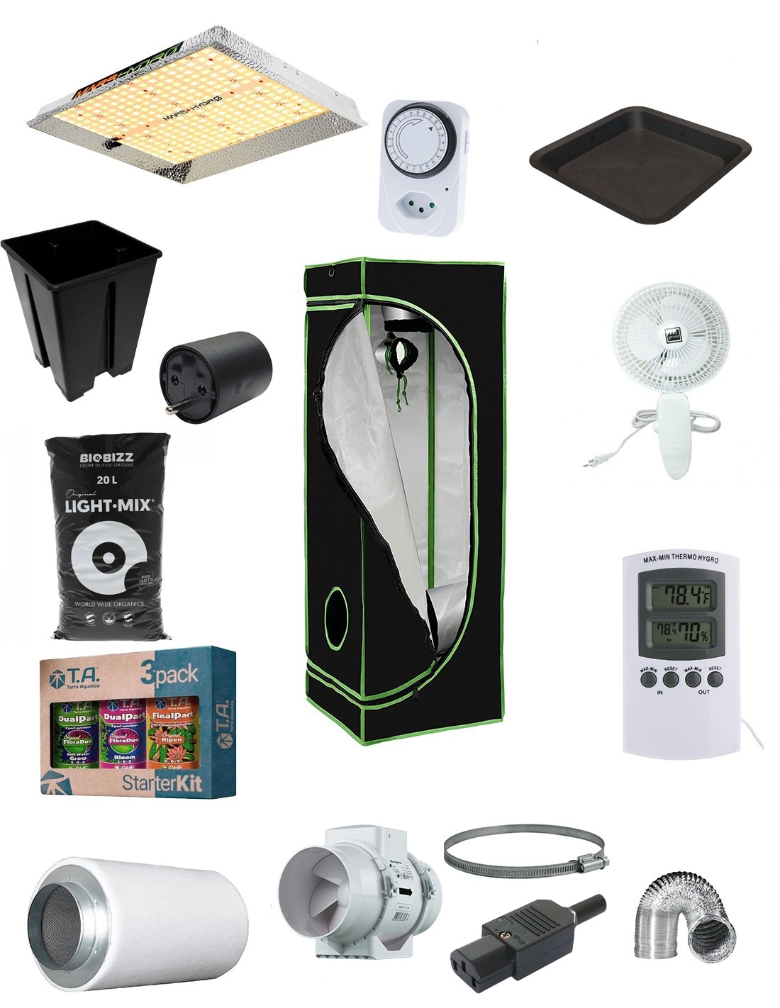 Indoor-Grow-Set mit den Maßen 40 x 40 x 120cm mit einem Mars Hydro TS-600 LED-Panel sowie allen notwendigen Materialien, um Ihre Pflanzen bis zur Ernte zu kultivieren.