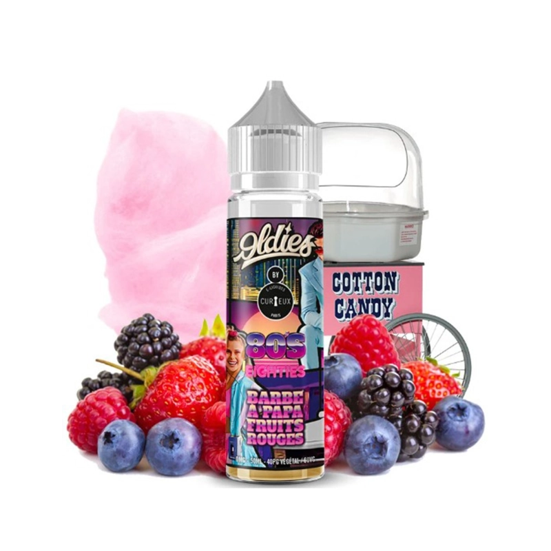 Eighties, leuchtende Neonlichter, synthetische Musik, Neonkleidung - Willkommen in den 80er Jahren! 1981, Miami, Croc-Top, offenes Oversize-Hemd, auf ihren Rollschuhen geniesst Kate eine riesige Zuckerwatte mit dem Geschmack von roten Früchten. Eine zeitlose Leckerei!