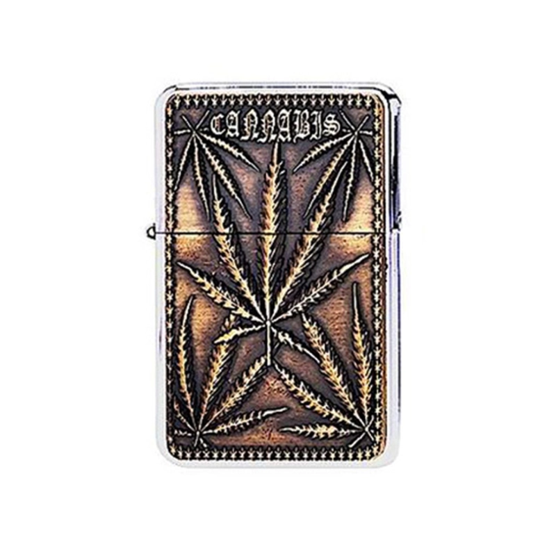 Briquet à Essence Métal Cannabis Leaves Gold CH